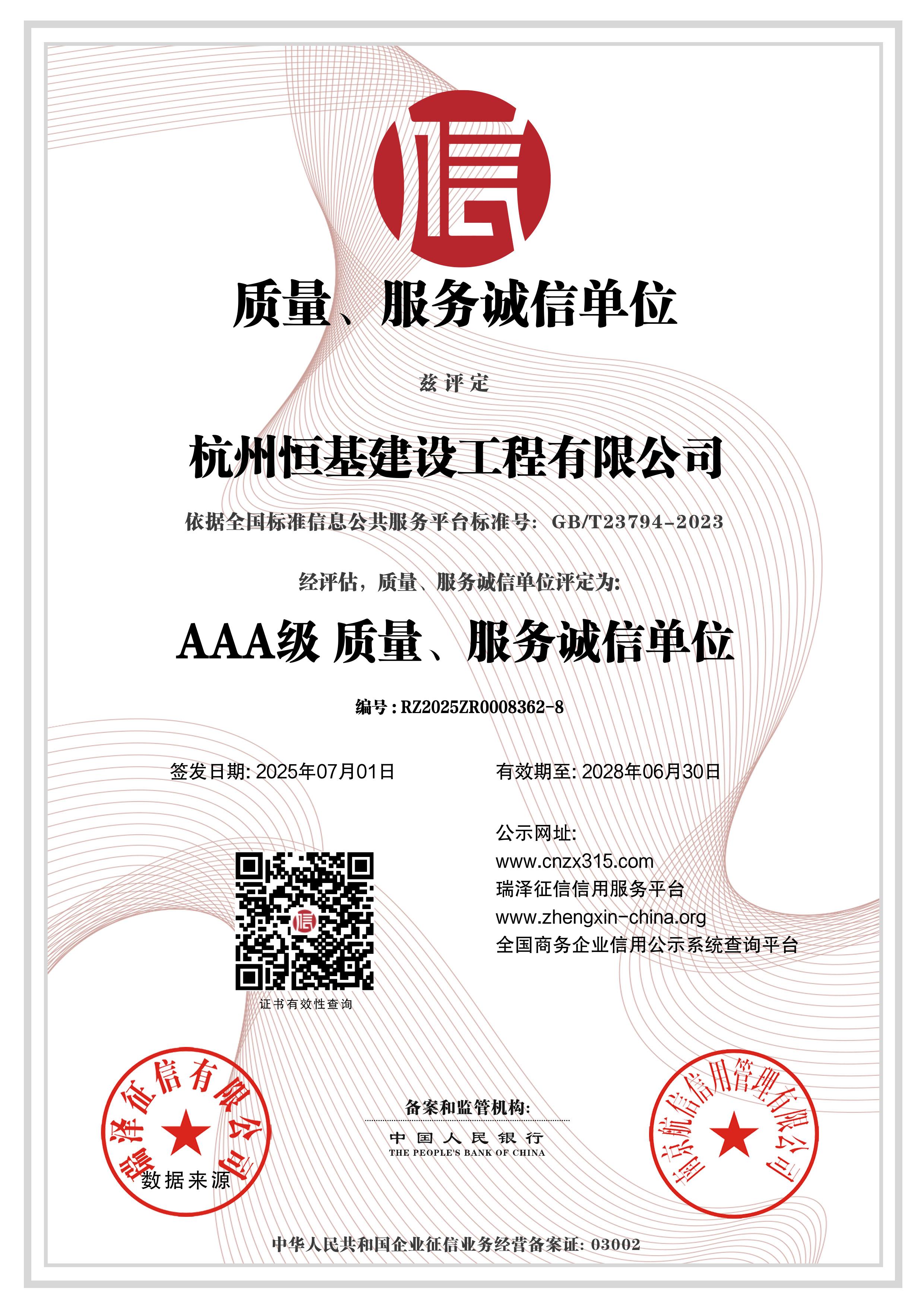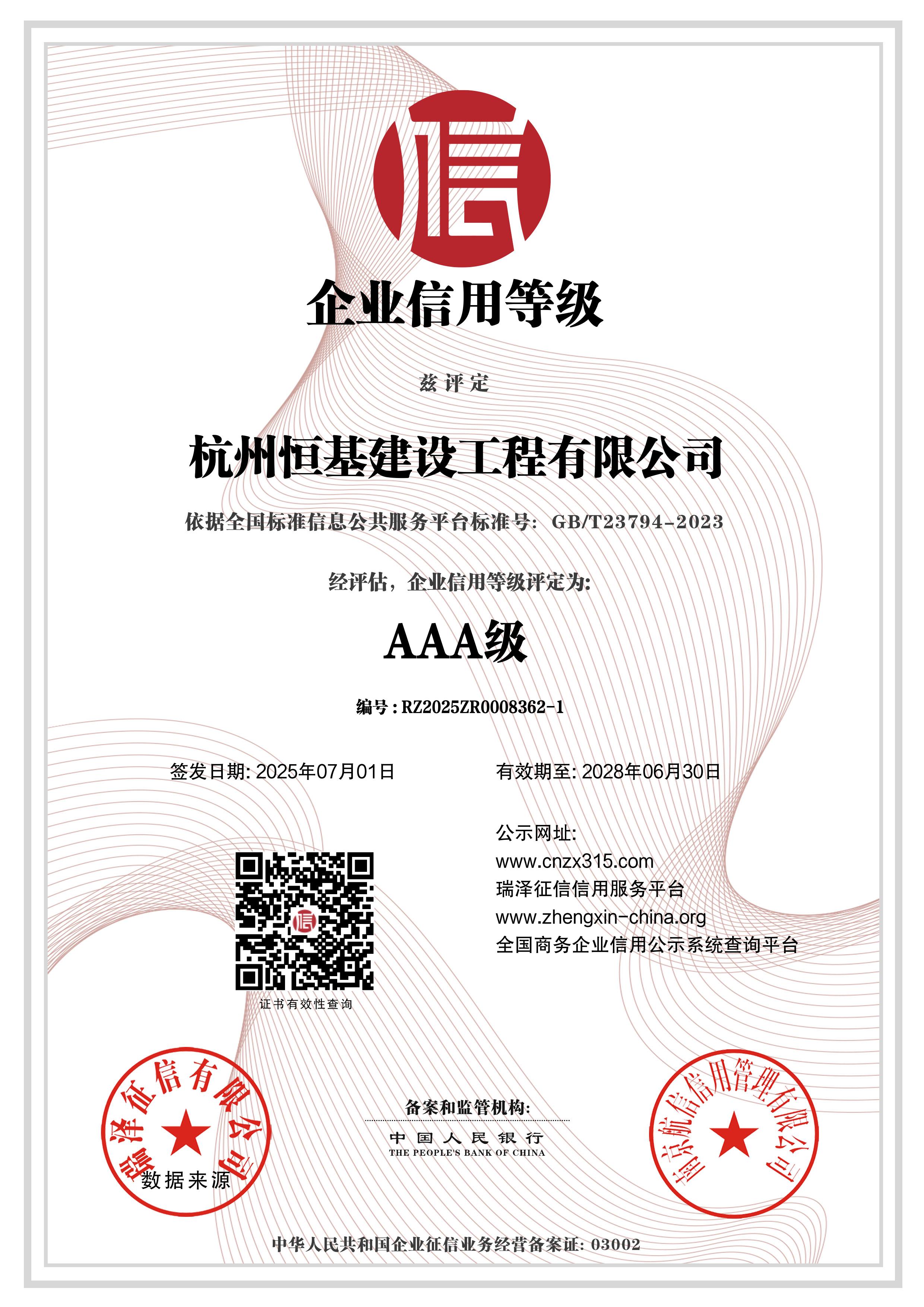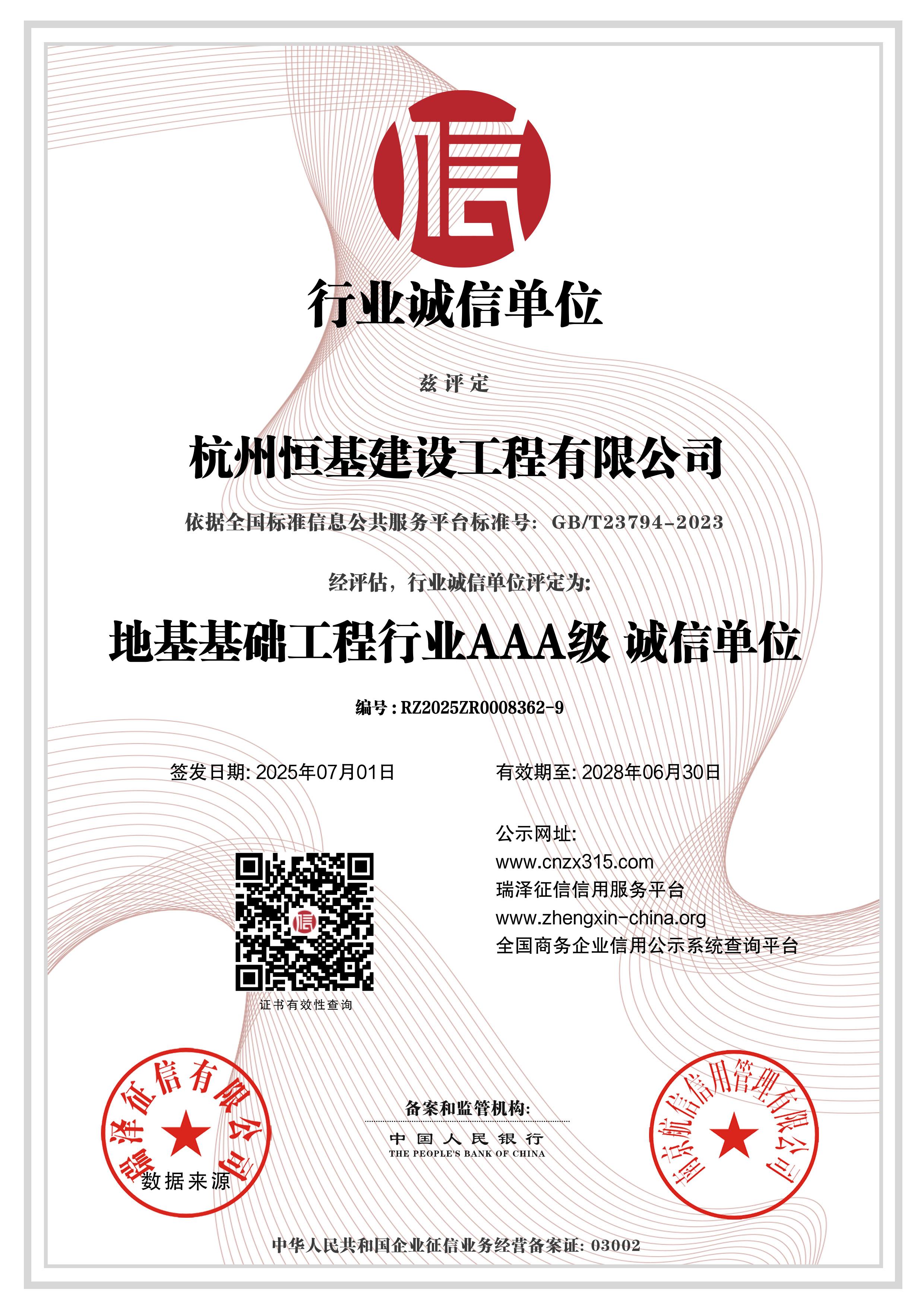 杭州恒基建设工程有限公司是壹级地基基础施工企业,成立于2003年,已有13年预应力管桩、钻孔灌注桩、沉管灌注桩、冲击钻孔灌注桩、水泥搅拌桩、SMW工法桩、地下连续墙等专业的施工经验。现公司注册资金为壹仟捌佰伍拾捌万元;有各类工程师和经济专业技术人员245余名,拥有高级职称以上人员5人,中级职称人员15人,一、二级注册建造师27余名,各类职业经理人12余人。